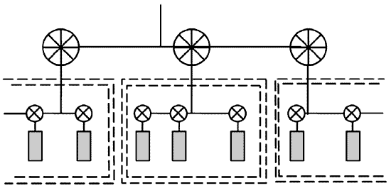 3.5. На следующем уровне оформившаяся и утвердившаяся ячейка такого типа «склеивается» с другими и образует «этаж», как это показано на рис. 11.