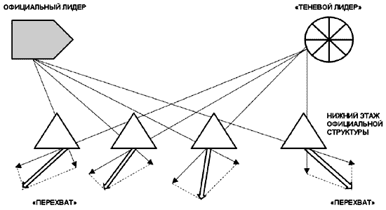 Рис. 12. Схема «перехвата» команд в случае, когда официальные руководители не принадлежат к зоне «сращивания».