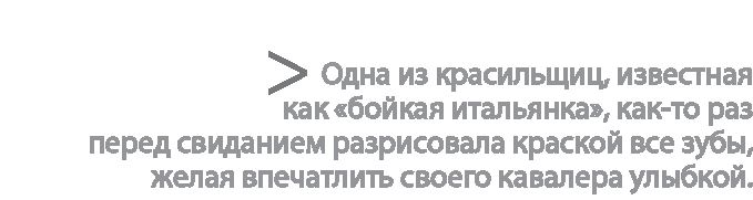 «Выделения из носа на моем платке, – вспоминала Грейс Фрайер, – светились в темноте». Одна из красильщиц, известная как «бойкая итальянка», как-то раз перед свиданием разрисовала краской все зубы, желая впечатлить своего кавалера улыбкой.