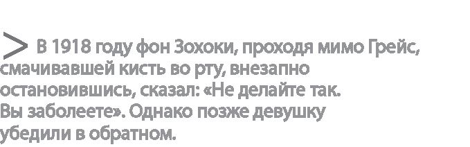 В тот день она, как обычно, работала за столом, смачивая губами и макая в краску кисть, как и все остальные девушки. У фон Зохоки, как это было обычно для него, голова полнилась идеями и запутанными научными выкладками – он спешил заняться своей работой. Но в этот раз, поспешно проходя через студию, он остановился и посмотрел прямо на Грейс – а также на то, чем она занималась, словно впервые увидел.