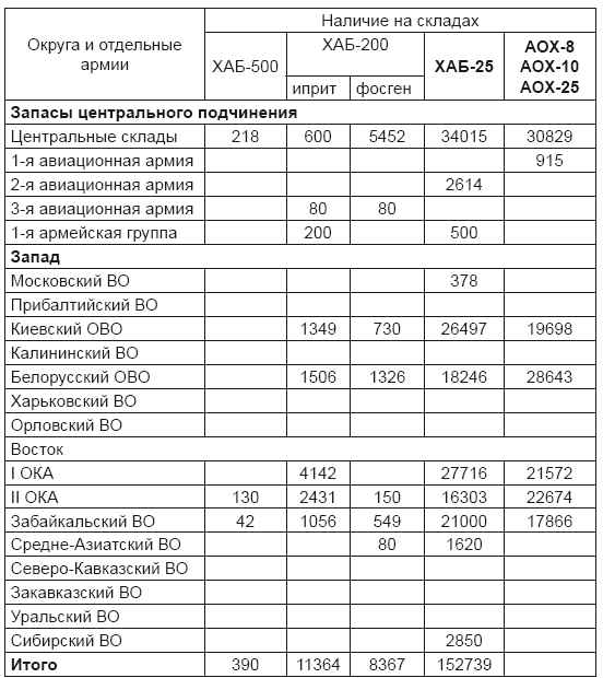 Табл. 25. Запасы советских авиационных химических боеприпасов (по состоянию на 1.1.1940 г.) [481]