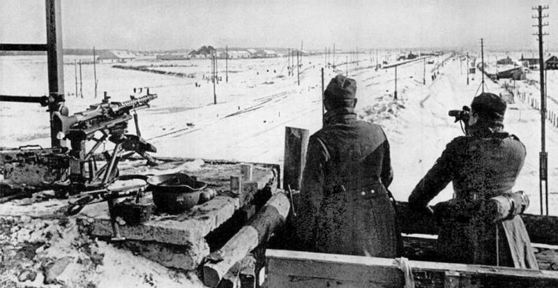 Немецкое боевое охранение на Октябрьской железной дороге у моста в юго-восточной части Калинина.