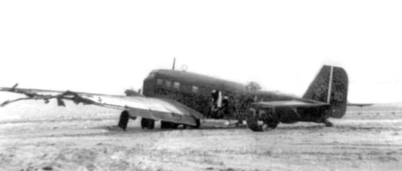 Транспортный Ju 52 со снятыми моторами и повреждениями крыла на одном из калининских аэродромов. Возможно, именно он был оставлен после отступления немцев из города в декабре 1941 года.