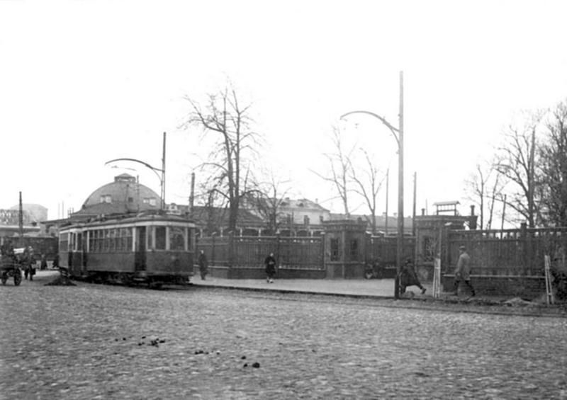 Трамвайное кольцо возле железнодорожного вокзала. Довоенное фото.