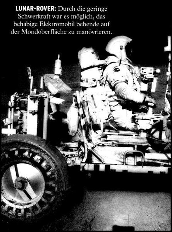 А теперь я хотел бы вместе с вами рассмотреть несколько картинок из юбилейного номера австрийского журнала «Format»[8]. Сначала мое внимание на стр. 108–109 привлекло фото лунного автомобиля (рис. 8) – я никогда раньше не видел его. (Заранее прошу прощения, если при перепечатках фотографий упадет их качество.)
