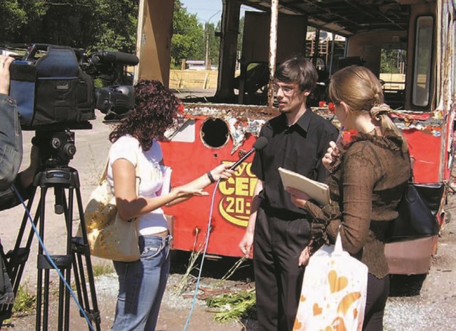 Внизу: Антон на мероприятии “Похороны троллейбуса”, связанном с закрытием троллейбусного движения, июль 2006 г., Воронеж.