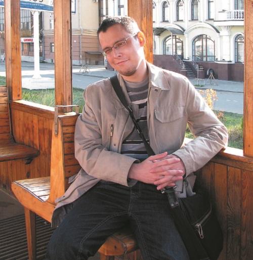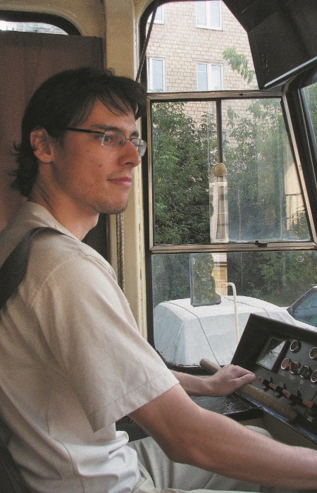 Вверху: Антон в историческом трамвае в Казани, октябрь 2011 г.