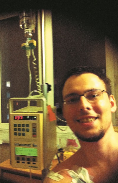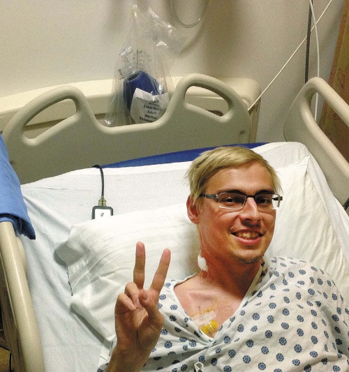 Внизу: Стало так. Антон после операции, во время которой ему вырезали лимфоузел. Август 2013 г., Нью-Йорк.