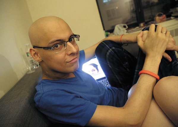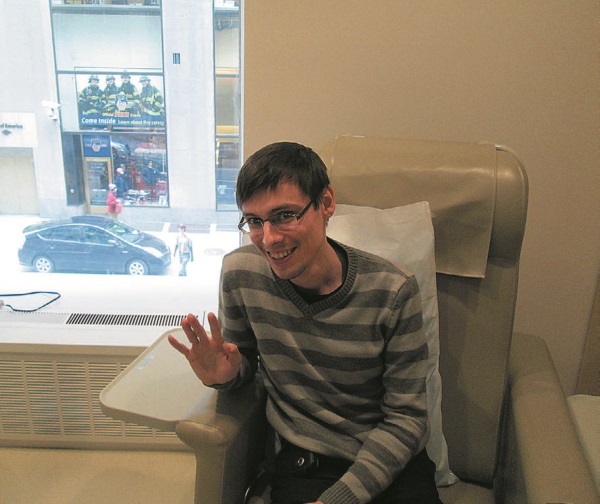 Внизу: Антон доволен быстрыми темпами восстановления после трансплантации костного мозга от донора. Март 2014 г., Нью-Йорк.