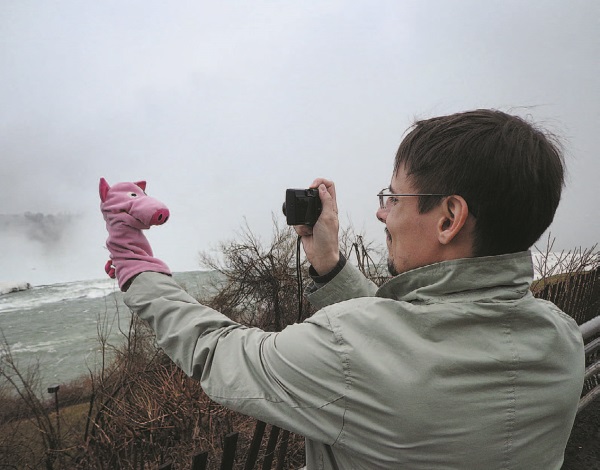 Внизу: Антон во время путешествия с Димой, апрель 2013 г., Ниагара.