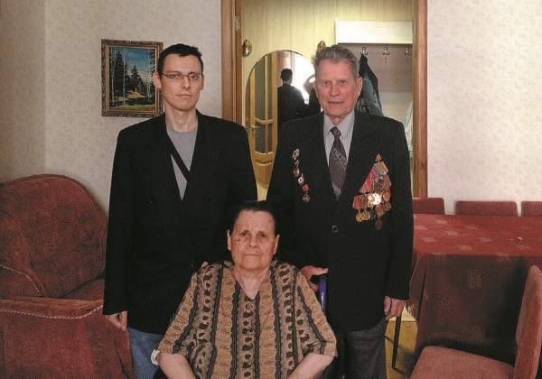 Вверху: Антон с бабушкой и дедушкой, июнь 2013 г., Воронеж.