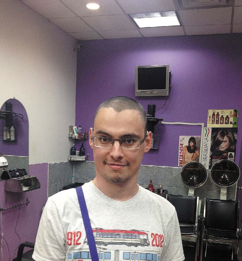 Вверху: Перед очередной химией Антон решил поэкспериментировать с цветом волос. Было так. Август 2013 г., Нью-Йорк.