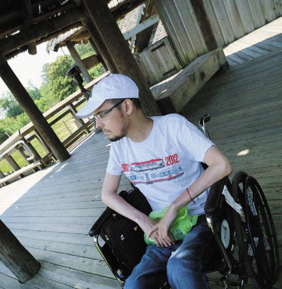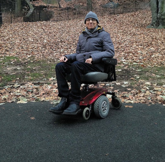 Вверху: Первая прогулка на электрической инвалидной коляске после септического шока, комы и лучевой терапии. Начало декабря 2013 г., Нью-Йорк.
