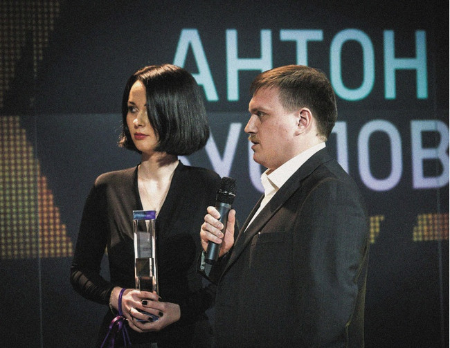 Посмертно Антон был награжден премией РБК “Гражданин года” и “Выбор аудитории РБК”. Вручали премии вдове Маше и брату Диме. Декабрь 2014 г. Фото РБК.