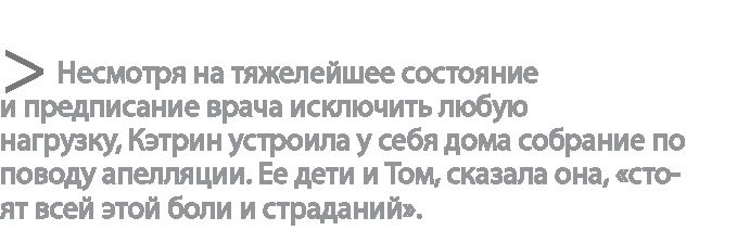 Кэтрин была тронута поддержкой подруг, однако больше всего она переживала за Тома. Он тяжело воспринял известие об апелляции. «Он особо ничего не говорит, – поведала Кэтрин Перл, – однако для него это стало огромным стрессом».