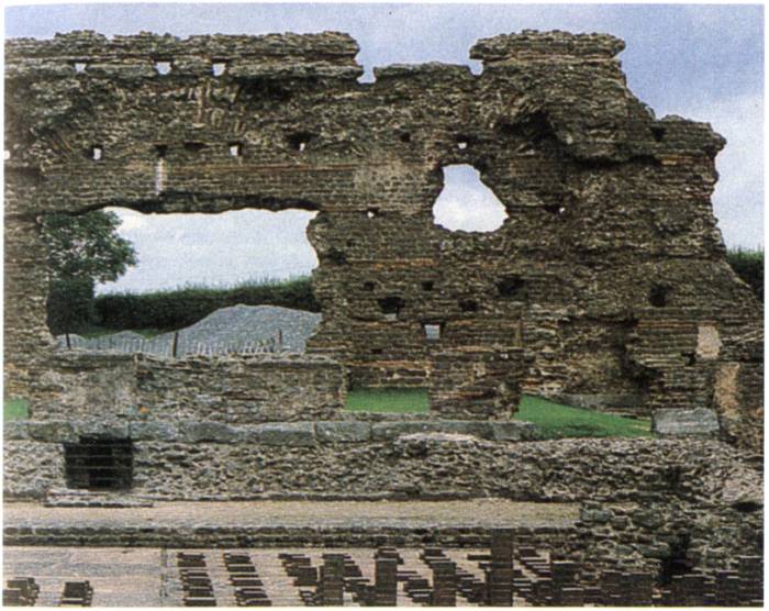 Остатки терм Вирокониума вблизи Шрусбери в Шропшире. Вирокониум, четвертый римский город в Британии, бил сооружен для военных целей в 46 г. н. э. Многочисленные следы присутствия римлян, обнаруженные во время раскопок в XIX в., получили название «Помпеи Англии».