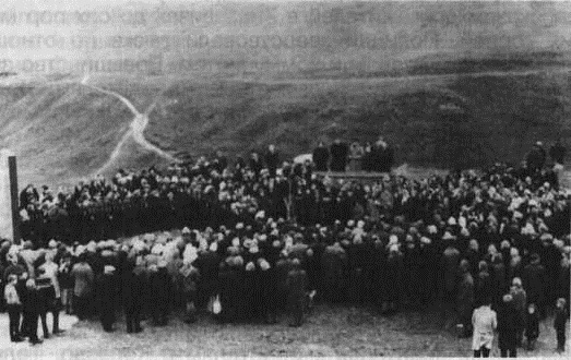 Хиславичи. Две фотографии об открытии памятника погибшим евреям Хиславичского гетто. Подробности неизвестны.