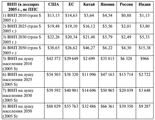 Источник: прогноз Фонда Карнеги «Устройство мира в 2050 году» (The World Order in 2050), февраль 2010 г.
