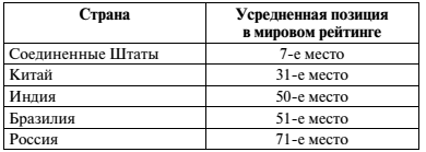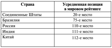 Усредненный мировой рейтинг на основе индексов коррупции, развития человеческого потенциала, образования и свободы прессы