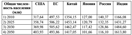 Источники: (1–4) прогнозы ООН, исходящие из среднего коэффициента рождаемости (ЕС = ЕС-27); (5) – «Всемирная книга фактов» ЦРУ.