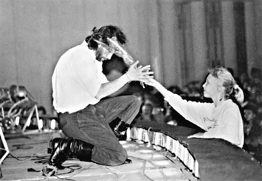 В 1989 году мы были на гастролях в Киеве. Город встретил нас очень гостеприимно. На центральных улицах висели огромные рекламные щиты, на которых двухметровыми буквами было написано: «Игорь Тальков. “Чистые пруды”». Город ждал любимого лирического певца. Концерт проходил в самом престижном республиканском концертном зале – дворце «Украина». В правительственной ложе – местная власть. Я работал на центральном осветительном пульте. Началось первое отделение концерта, в котором Игорь исполнял блок политических песен. Постепенно в наэлектризованном зале стало нарастать возбуждение. После исполнения первых песен дали свет на правительственную ложу, представители местной власти покинули зал. Каждая новая песня встречалась овациями. Назревал скандал. В антракте ко мне, на центральный пульт, прибежали девушки, работающие на световых пушках.