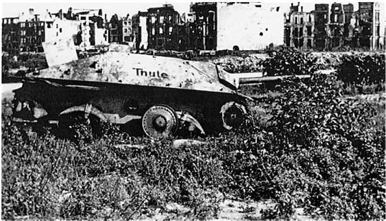 САУ «Хетцер» на окраинах Берлина. Помимо «фаустников» в городе советские войска встретили немало вполне традиционных противотанковых средств