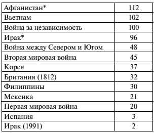 (по состоянию на март 2011 года, в месяцах знаком * отмечена продолжительность активных военных действий)