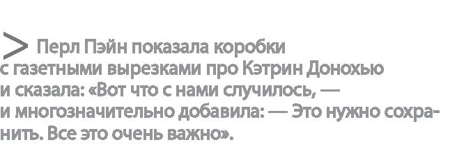 Незадолго до смерти Перл однажды позвала Рэнди к себе. «Она попросила меня принести с чердака какие-то коробки», – вспоминал он. Он пробирался между предметами, что Перл там хранила: детская коляска, кроватка – подобные вещи не ожидаешь обнаружить на чердаке у старушки, однако, возможно, Перл попросту не смогла избавиться от последних напоминаний о тех многочисленных детях, которых она так хотела, но никогда не смогла завести. Рэнди нашел коробки, которые она имела в виду: они были набиты газетными вырезками про Кэтрин Донохью, а также письмами и документами, связанными с ее делом.