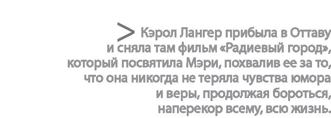 Когда Мэри умерла в 1993 году, как и многие красильщицы циферблатов, она пожертвовала свое тело науке. «Она думала, что, возможно, сможет помочь другим, – говорила ее правнучка Пэтти. – Возможно, они смогут понять, что именно с ней случилось, и найдут лекарство. Возможно, она сможет помочь другим женщинам». Тело Мэри стало не последним трупом красильщиц циферблатов из Оттавы, которое исследовали ученые, – не было оно и первым. Эта честь выпала Маргарет Луни.