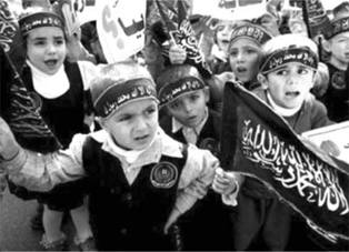 Насильная вербовка шахидов на Ближнем Востоке как в Палестинской автономии, так и в Ираке не практикуется. Она просто не нужна. Добровольцев уже сейчас слишком много. А на подходе следующее поколение. Оно таково, что следует признать: нешуточная обеспокоенность Израиля абсолютно обоснована. Сегодняшние палестинские дети – это поколение, выращиваемое для определенного типа самопожертвования. Сосредоточенная работа, которую ведет ХАМАС среди детей, включая самых маленьких, таит в себе серьезнейшие опасности (рис. 1).