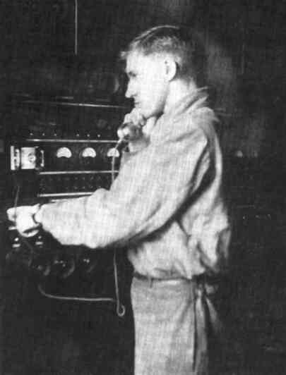 Сменный техник центральной ВЧ-станции Э.А. Крылович проводит профилактические работы на аппаратуре станции. Середина 30-х годов