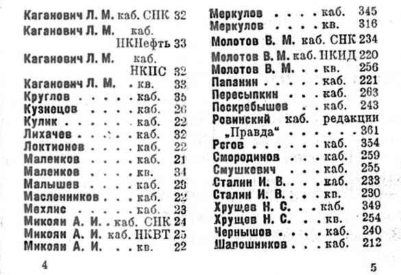Абоненты АТС Кремля в «Списке абонентов правительственной высокочастотной связи (ВЧ-связи)», изданным 2-м Спецотделом НКВД СССР. 1940 год