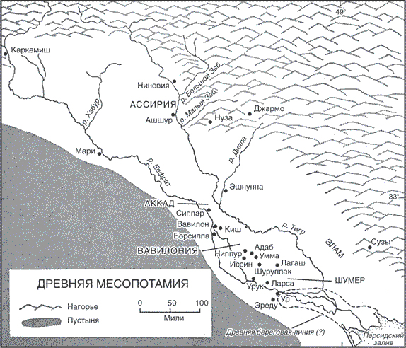 Большинство областей Плодородного Полумесяца открыты для проникновений со стороны как оазисов, так и возвышенностей, а также для путешествий по самой территории Полумесяца. Первые земледельцы поселились в тех его частях, где можно было полагаться на зимние дожди. Однако эти люди намеренно избегали Вавилонии, и на это была веская причина. Осадки здесь были скудными. Большую часть года долина представляла собой груды песка и заросшие тростником топи, сквозь которые лениво текли реки. Однако в конце весны уровень воды в них резко поднимался, и непредсказуемое разрушительное наводнение накрывало всю низменность. В течение знойного лета яростные ветра гоняли по долине песок. Ни с точки зрения климата, ни по своим географическим условиям Вавилония не привлекала людей; ее единственными ресурсами были постоянный источник воды, то есть реки, и чрезвычайно плодородная почва, которая каждый год обновлялась за счет наносов во время наводнений. Земледельцы в этой долине могли собрать урожай ячменя в сорок раз больше посаженного.