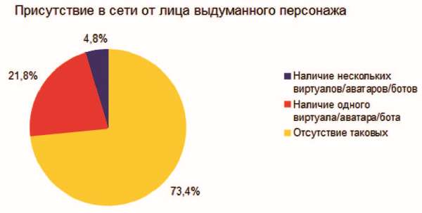 Большинство респондентов достаточно устойчиво воспроизводит связь между онлайном и офлайном на уровне практик регистрации в соцсетях, предпочитая находиться там под своим, а не вымышленным именем.