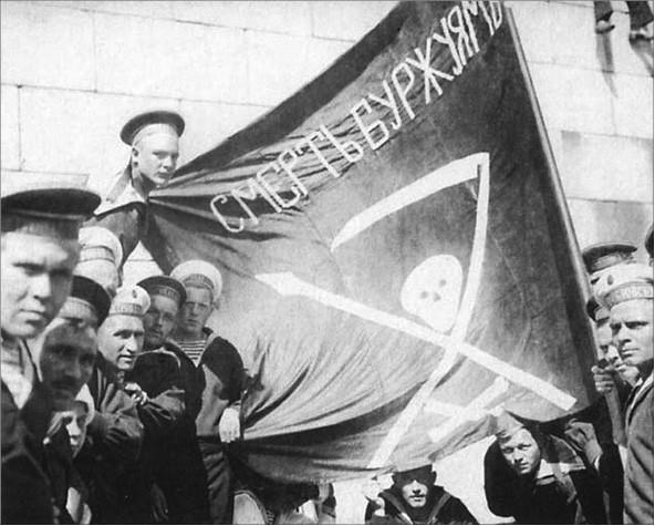 Революционные матросы под знаменем с надписью «Смерть буржуям!»