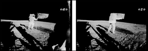 А это означает, что Стенли Кубрик снимал много дублей установки американского флага «на Луне», а впоследствии запамятовал, что видеокамерой и кинокамерой он снимал разные флаги и из разных положений. Причем это еще не вся туфта с флагом, которую нам пытаются всучить американцы, но об остальном в последующей главе.