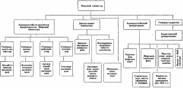 Процесс формирования Морского министерства продолжался до 1821 г., когда по мнению руководителей Морского ведомства была достигнута известная стабильность (см. схему 7).