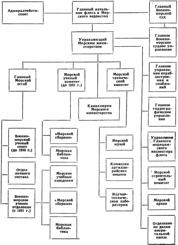 Все это нашло свое отражение в «Положении об управлении Морским ведомством» 1885 г. и «Наказе по управлению Морским ведомством» 1888 г.