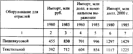 Импорт Советским Союзом оборудования для некоторых отраслей промышленности, 1980–1985 гг.