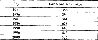 Противоречие между экономической неизбежностью и политической невозможностью осуществления стабилизационной программы – суть происходившего в СССР в конце 1980-х годов. Развитие событий в рамках жесткого сценария адаптации к внешнему шоку, связанному с падением нефтяных цен, иллюстрируют данные по одной из отраслей – птицеводству (см. табл. 5.8). Эта отрасль производства в СССР с начала 1970-х годов практически полностью зависела от массовых закупок кормового зерна по импорту. За ростом поголовья в период высоких цен на нефть, – последовало его резкое сокращение в то время, когда цены упали. Этот процесс должен был начаться уже в 1986 г. Его отсрочка до 1990 г. была обеспечена ценой быстрого роста внешнего долга. После исчерпания валютных резервов и возможностей внешних заимствований, поголовье птицы сократилось до уровня, который предшествовал началу массового зернового импорта.