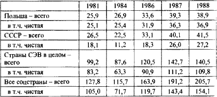 Сокращение поставок нефти и нефтепродуктов социалистическим странам с середины 1980-х годов, перераспределение нефтяного экспорта в пользу импортеров, способных рассчитываться конвертируемой валютой, становится регулярной практикой. Между тем долги социалистического лагеря растут. К 1988 г. внешняя задолженность социалистических стран в свободно конвертируемой валюте Западу составила 206 млрд долл. Объем чистой задолженности увеличился до 154,1 млрд долл. (см. табл. 5.10).