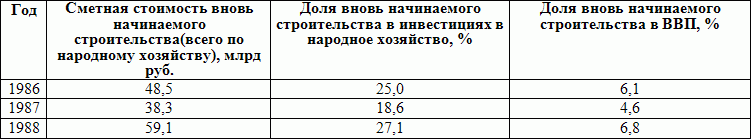 Вновь начинаемое строительство в СССР, 1986–1988 гг.