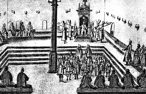 Прием в Кремле 27 мая 1661 года. Первый в группе стоящих бояр с шапкой в руке – Алмаз Иванов