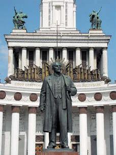 На месте ракеты, установленной у павильона «Космос» до 1951 года стояла огромная 25-метровая скульптура Сталина. Для того чтобы понять масштаб этого памятника, достаточно сказать, что высота ракеты – 38 метров. Памятник Сталину был установлен на том месте, где изначально планировалось поставить памятник Ленину. Он стал одним из символов ВСХВ-39 и даже был запечатлен во всех трех кинофильмах о ВСХВ – «Подкидыш», «Светлый путь» и «Свинарка и пастух», из двух последних, правда, впоследствии кадры были вырезаны. Интересный факт: изначально, когда готовили статую, был создан небольшой макет для утверждения. Уничтожить форму рука ни у кого не поднялась, поэтому маленькую скульптуру заложили во внутрь большой. Такая вот была матрешка. После развенчания культа личности статуи были закопаны на территории ВДНХ.